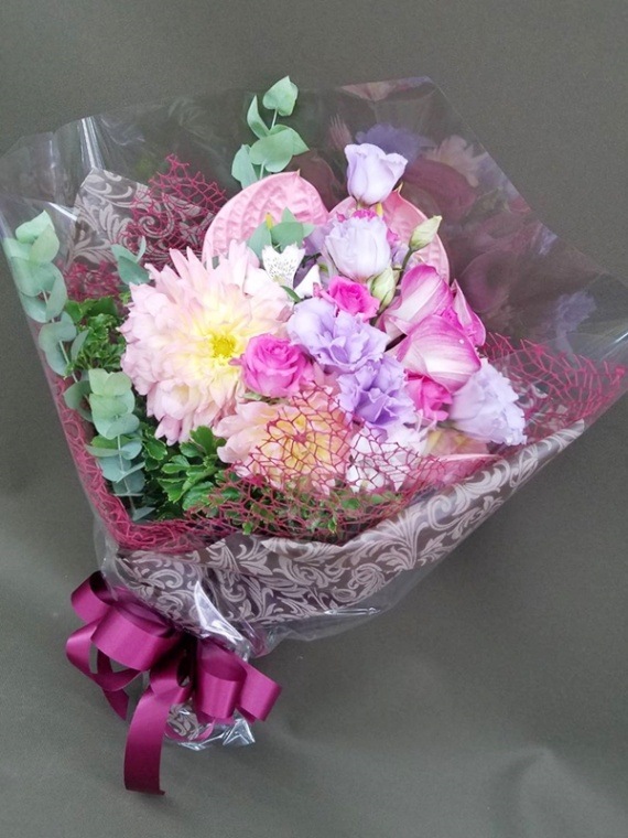 全国配送可能! ピンクユリ入り ピンク系 花束 bqt-032