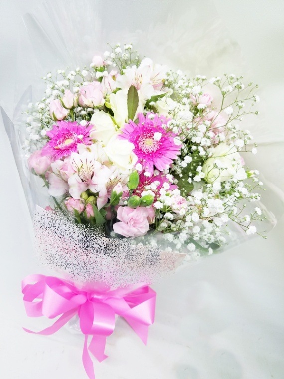 全国配送可能! ホワイトメインピンク系 花束 bqt-027