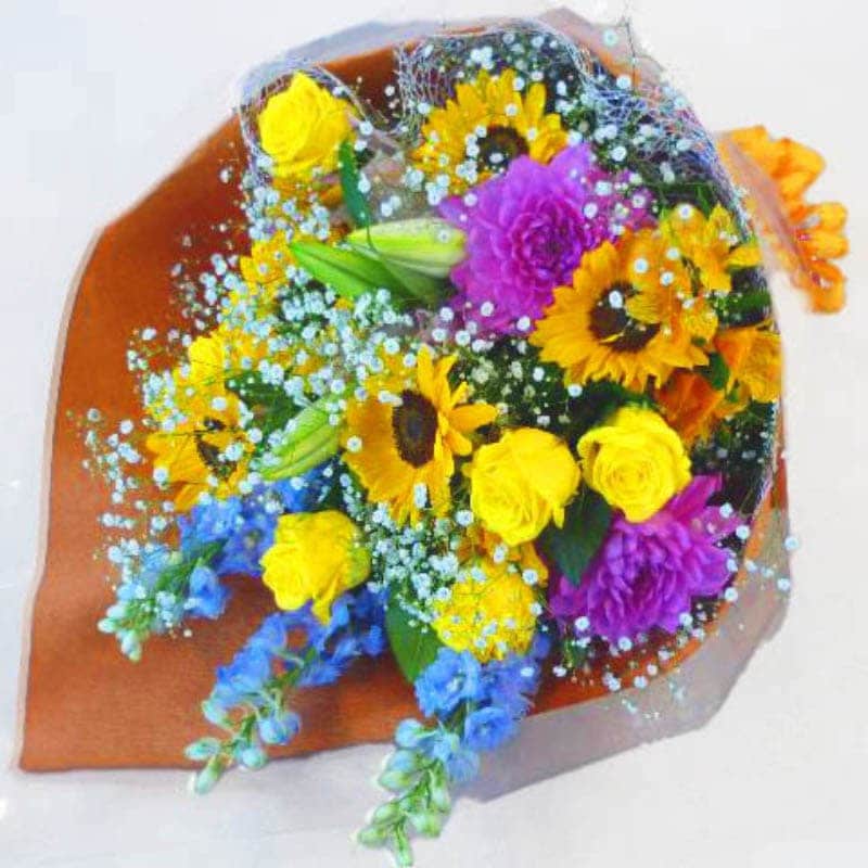 青いバラ 花束|スペシャルローズブーケ 【ゴールド&ブルー】 (15本から本数選択可能)