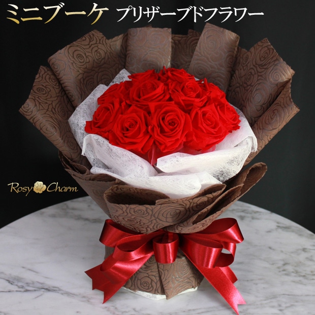 ミニブーケ|プリザーブドフラワー バラの花束 12本・11本・10本・9本|そのまま飾れるスタンディングブーケ|9輪から輪数指定可...