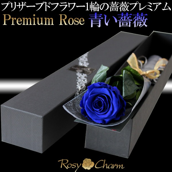 青い薔薇 プレミアムローズ1本プリザーブドフラワー|大輪のバラ一輪【ギフト箱入り】