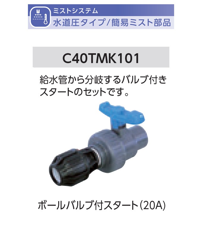 ボールバルブ付スタート(20A) 型式名:C40TMK101【簡易ミストオプション部品(水道圧タイプ) グローベン社製】