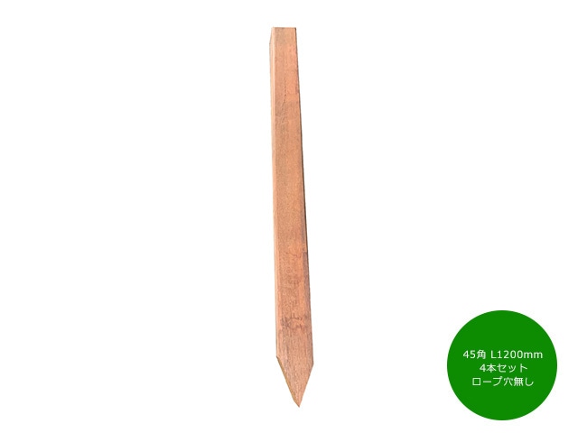 【天然木ウリン材】ウリン製杭45角 L1200mm 4本セット(ロープ用穴無し)【花壇杭 花壇囲い 間仕切り ビリアン】