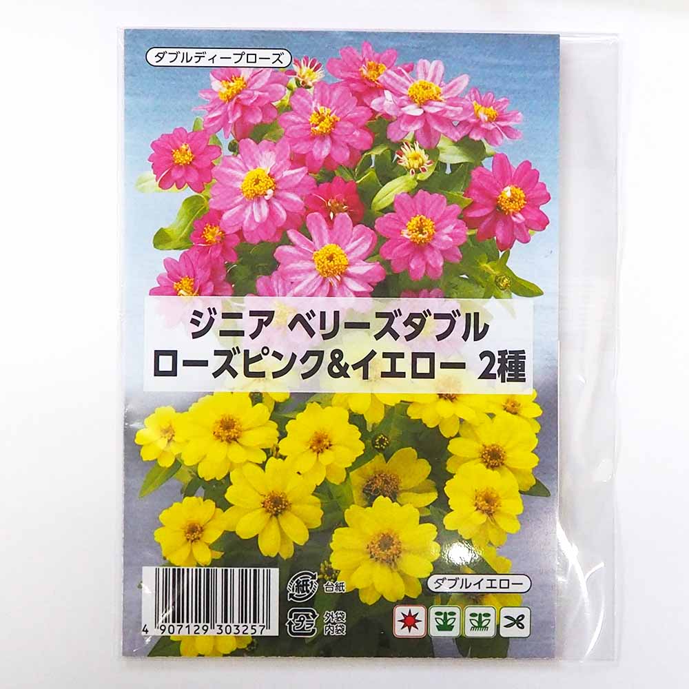 種子 ジニア ベリーズダブル Rピンク&イエロー 【 各約20粒/1袋売り】