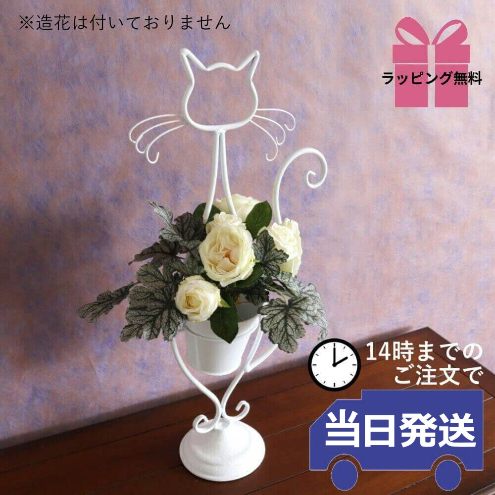 プランター 鉢カバー ネコホワイト 3号鉢 高さ57cm|おしゃれなインテリアの輸入雑貨イエ【公式通販】