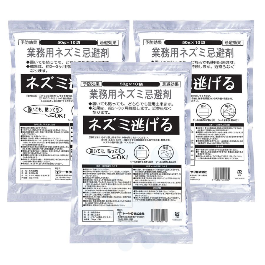 ネズミ対策 業務用 ネズミ逃げる (50g×10袋入)×3袋 ネズミ忌避剤 ネズミよけ 予防 忌避 持続 侵入防止