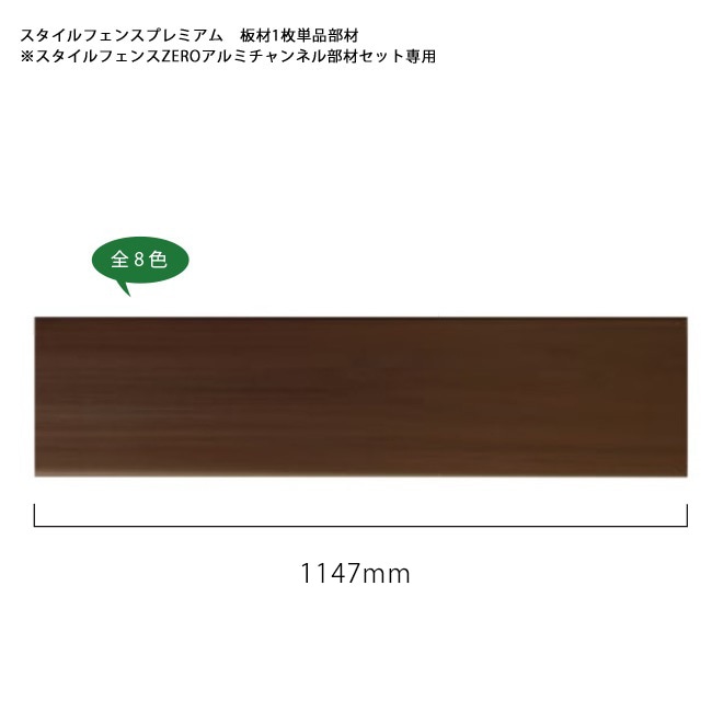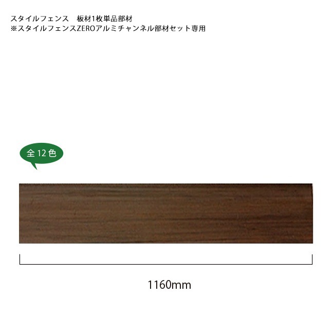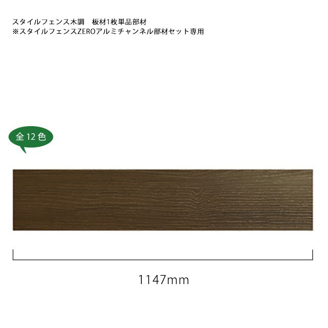 商品名:スタイルフェンスプレミアム木調板材1枚単品部材:H120×W1,147(mm)(※W値はアルミチャンネル部の厚みがあるため...