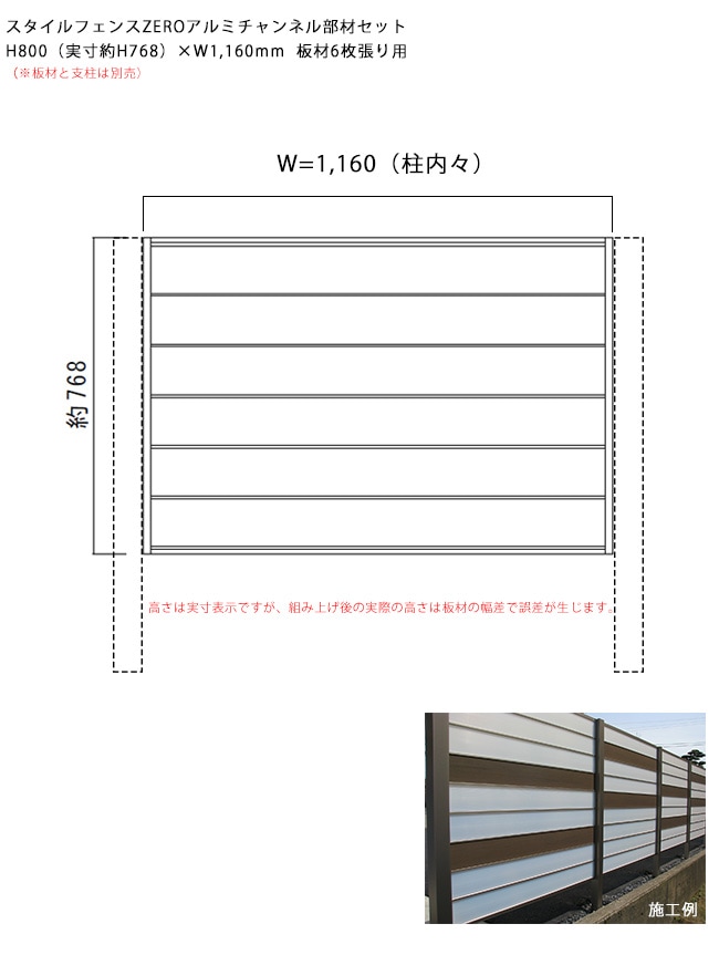 商品名:スタイルフェンスZEROアルミチャンネル部材セット1スパン:H800(実寸約H768)×W1,160(mm)板材6枚張り用...