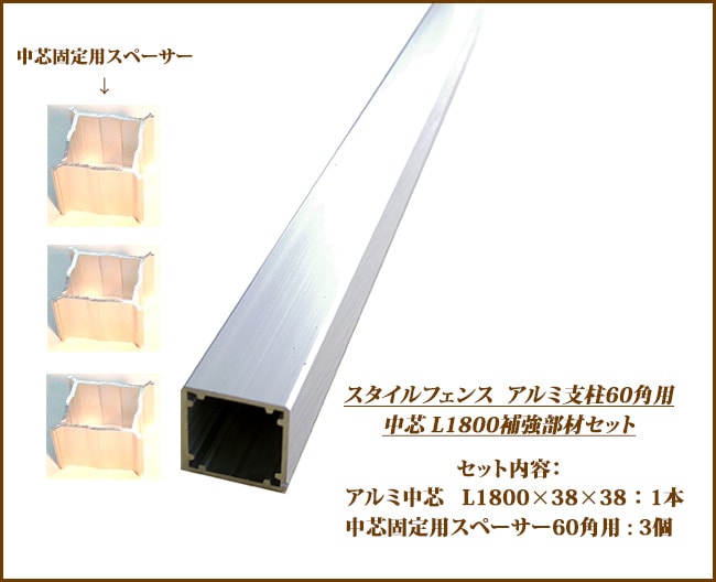 【スタイルフェンス アルミ支柱補強部材】スタイルフェンス アルミ支柱60角用 補強部材【商品名:中芯L1800用セット】アルミ中芯...