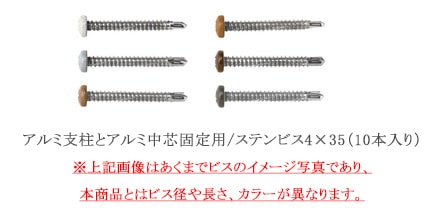 【スタイルフェンス アルミ支柱補強部材】アルミ支柱とアルミ中芯固定用/ステンビス(4×35mm、10本入り)