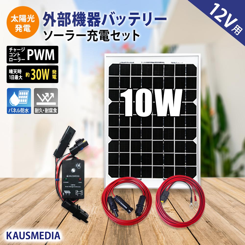 10W ソーラー充電 ケーブルセット 防水コネクタ付 車 維持充電 発電蓄電 バッテリー充電 電気柵バッテリー用 12V 充電