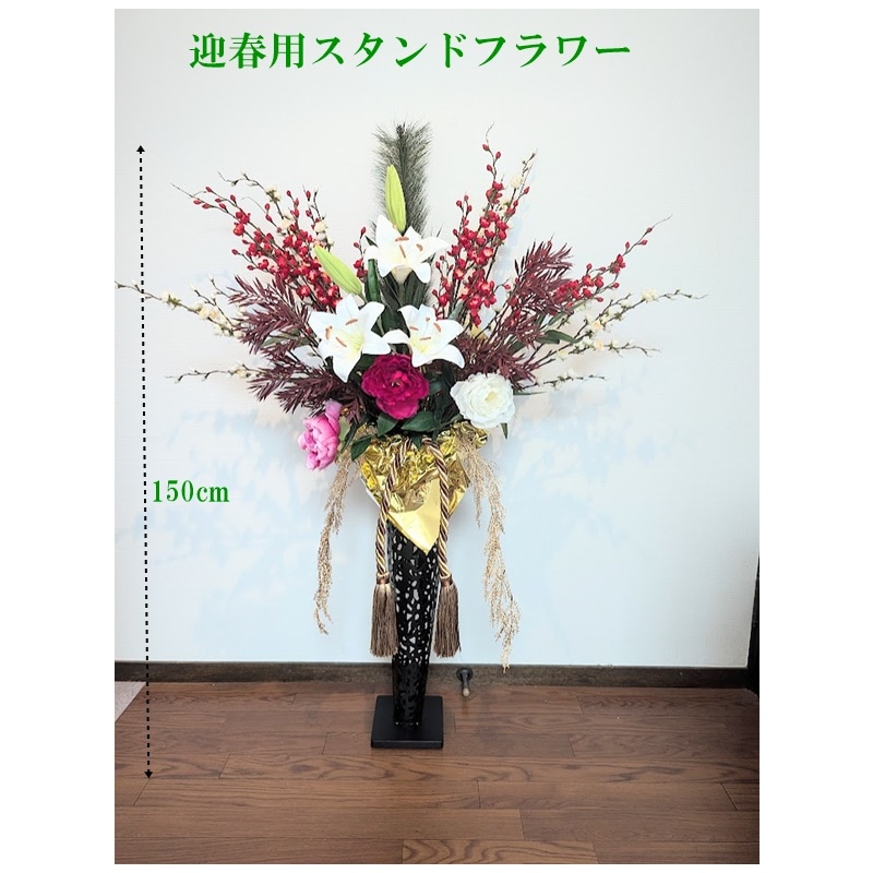 造花 お正月アレンジ 迎春用 スタンドフラワー 開店花 お祝い花 店舗デイスプレイ 梅松