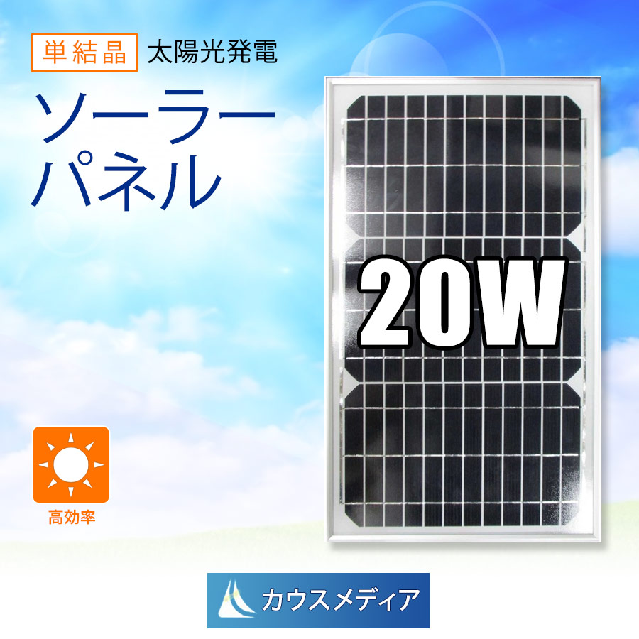 24Vシステム対応 20W ソーラーパネル 発電 単結晶 アルミフレーム バッテリー ソーラー充電 カウスメディア