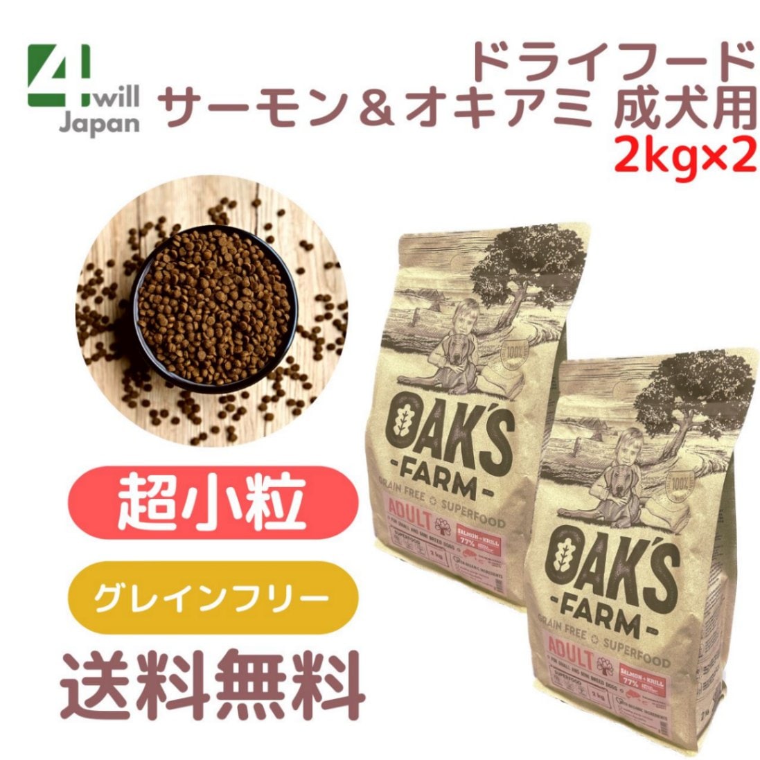 OAK’S FARM サーモン&オキアミ 成犬用 超小粒 2kg×2個 (賞味期限 2026年6月30日)