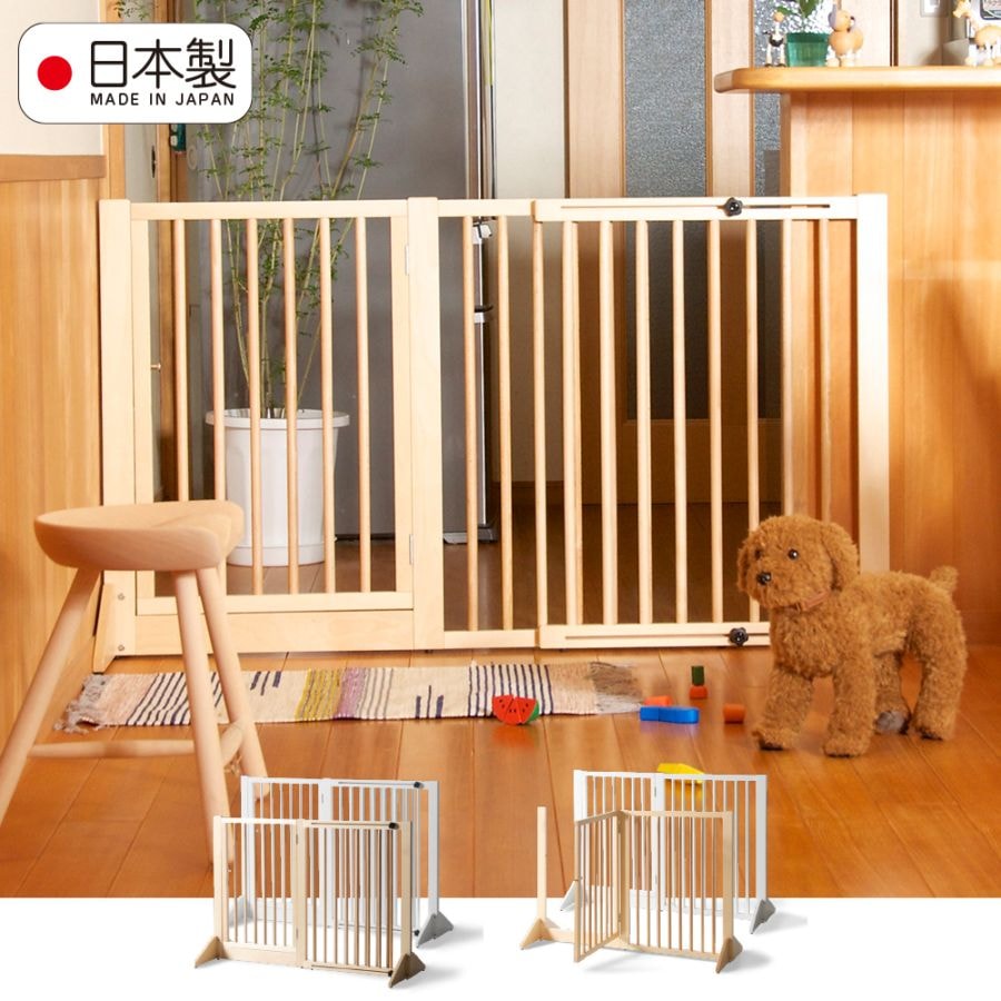 日本製 「木製ペットゲート【伸縮/ワイド/扉つき90】」 ペット バリケード 柵 ゲート フェンス 屋内 天然木 石崎家具