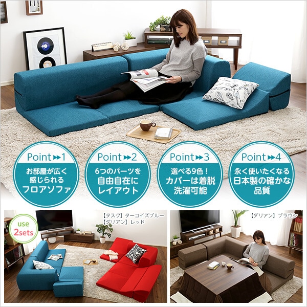 フロアソファ 3人掛け ロータイプ 起毛素材 日本製 (5色)組み替え自由|Luculia-ルクリア- SH-07-LCL-RD ...