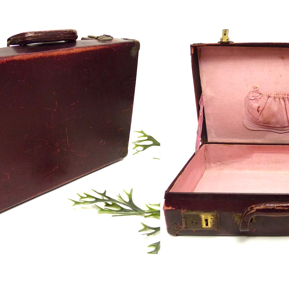 アンティーク トランク / ミニミニ オールド スーツケース(エンジ)【中古】