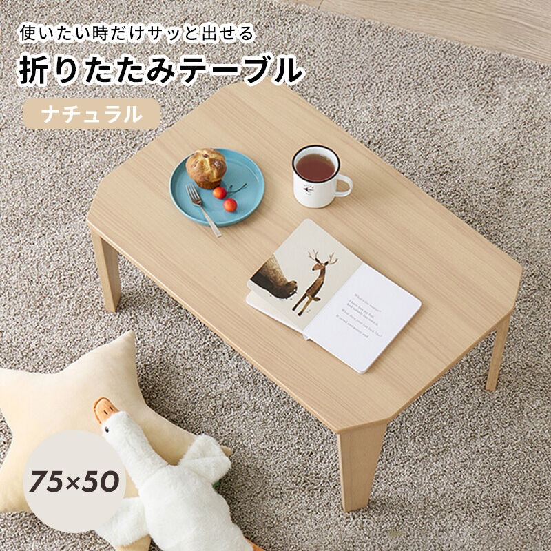 [4934257338509] 折り畳みテーブル 折れ脚 コンパクト 完成品 艶消し 木目調ナチュラル 75×50×32cm 子ど...