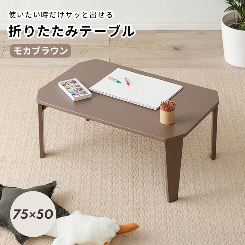 [4934257269322] 折り畳みテーブル 折れ脚 コンパクト 完成品 艶消し モカブラウン 75×50×32cm 子ども部...