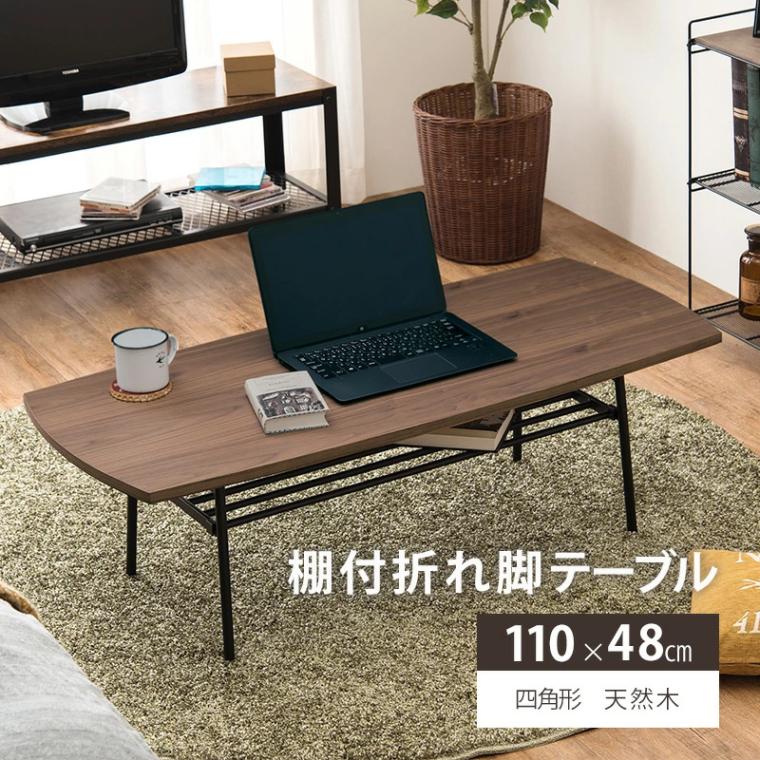 【未使用】 萩原 ハギハラ テーブル 折りたたみ おしゃれ ウッド 四角 センターテーブル 棚 天然木 リビング 作業 ローテーブ...