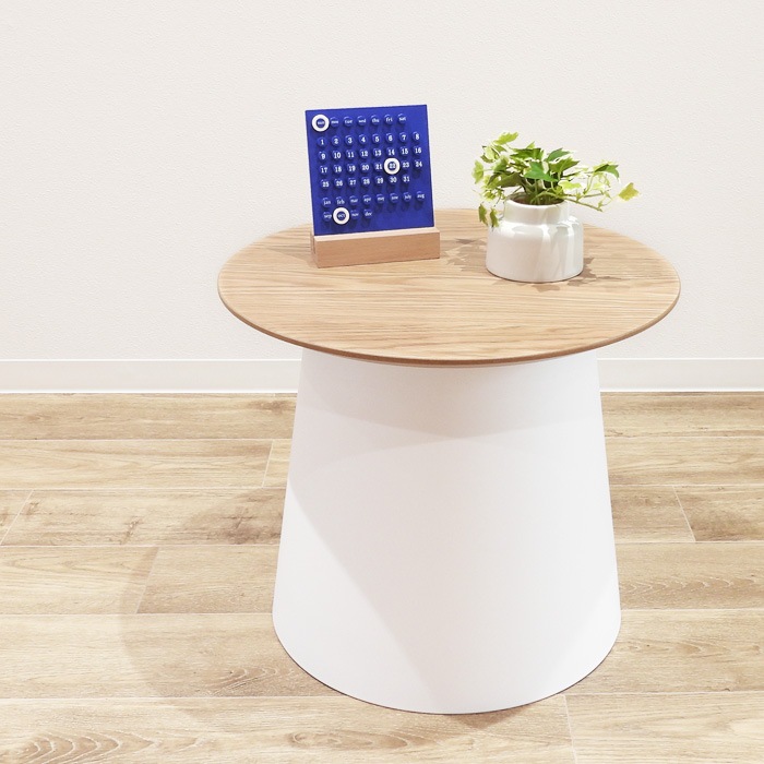 オーク調 ウッド天板 ラウンドテーブル 直径49cm 高さ42.5cm ホワイト|サイドテーブル・玄関・リビング・ベッドサイド・韓...