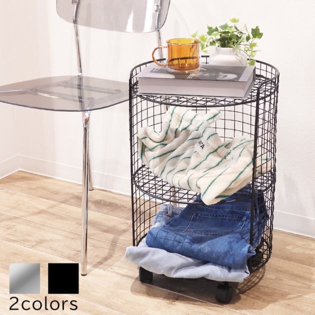 ラウンド ワイヤーメッシュ サイドテーブル 3段 ブラック/シルバー|オープンシェルフ・ラック・ソファサイド・ベッドサイド・韓国イ...