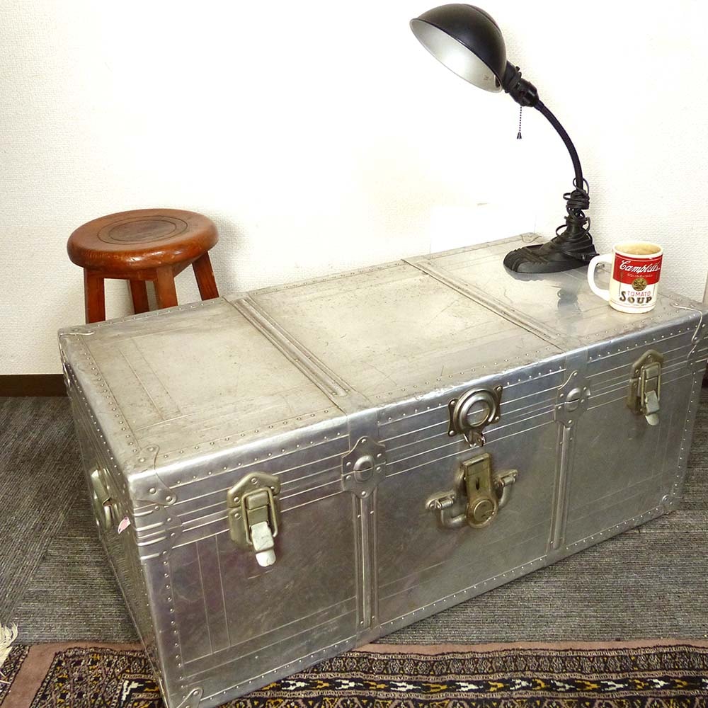 アンティーク ビンテージ 大型アルミトランク /ローテーブル / コーヒーテーブル 船箱【中古】【送料無料】