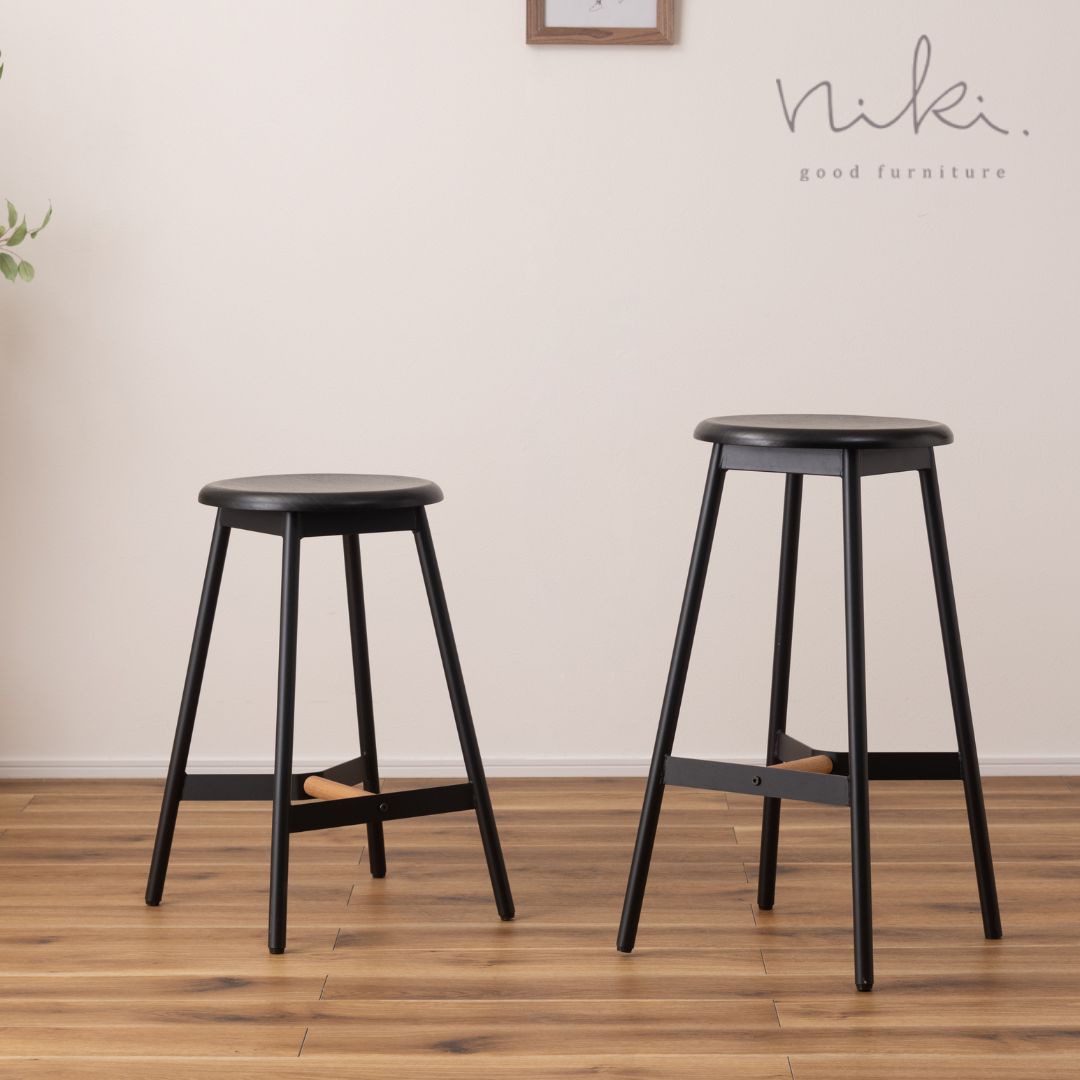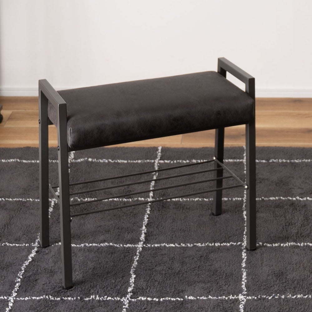クロスレザー×スチールの棚板付き【バベルスツール】BLACK(ブラック)送料無料 niki.