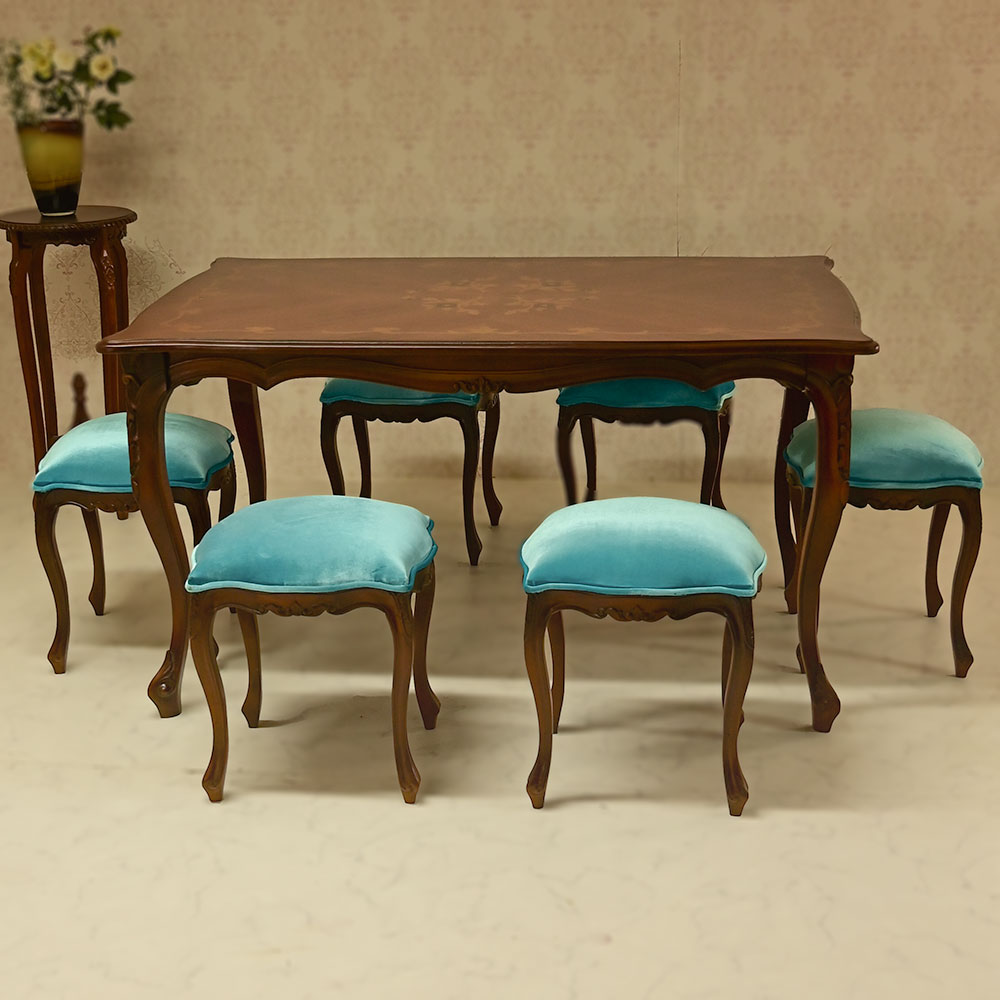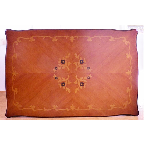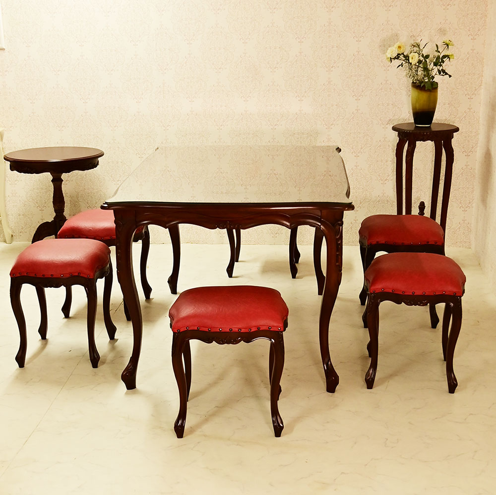marrone スクエア ダイニングテーブル+スツール6脚セット 食卓机+スツール6脚セット 135cm花柄 マホガニー材使用