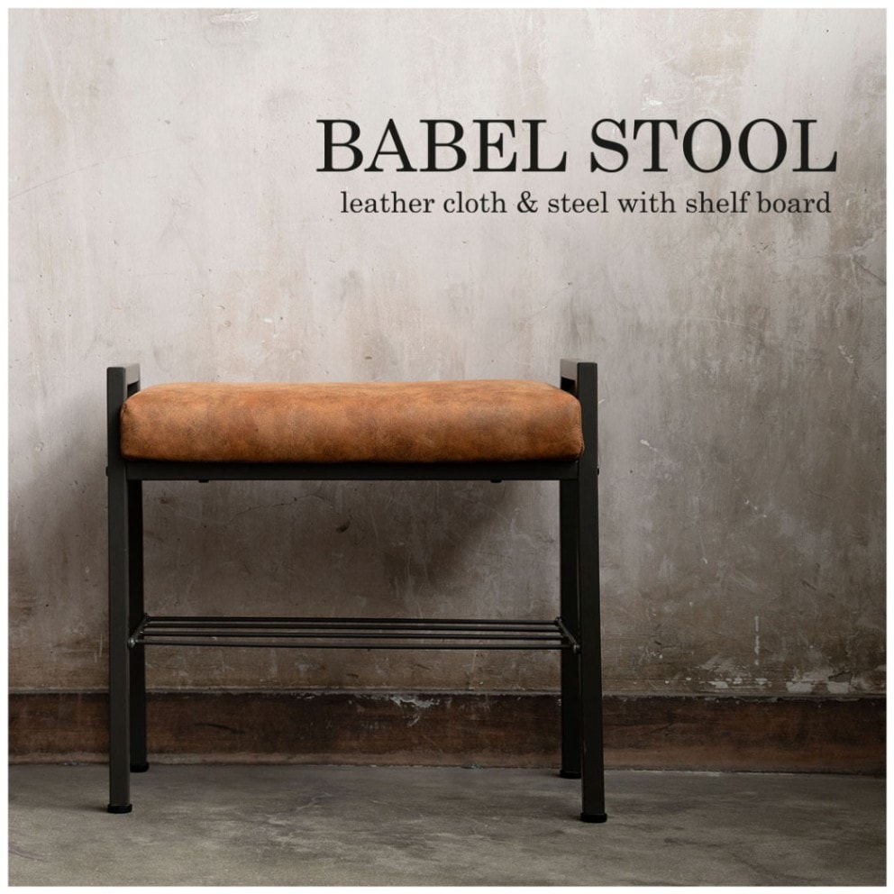 クロスレザー×スチールの棚板付き【バベルスツール】CAMEL(キャメル)送料無料 niki.