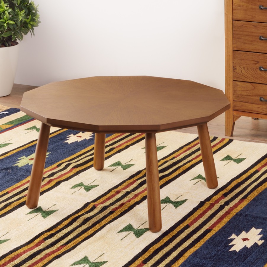 おしゃれな多角形こたつテーブル ブラウン オーク ラバーウッド