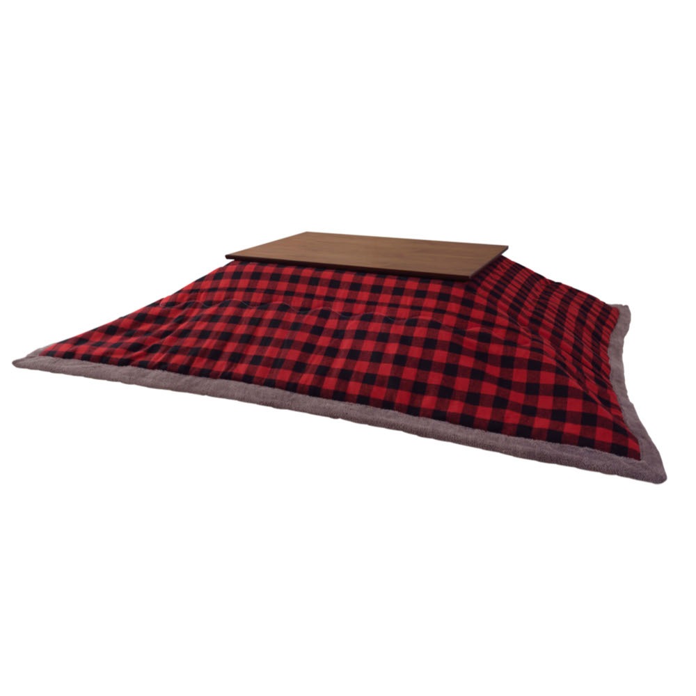 おしゃれなチェック柄のあったか薄掛コタツ布団 長方形 モダン赤チェック