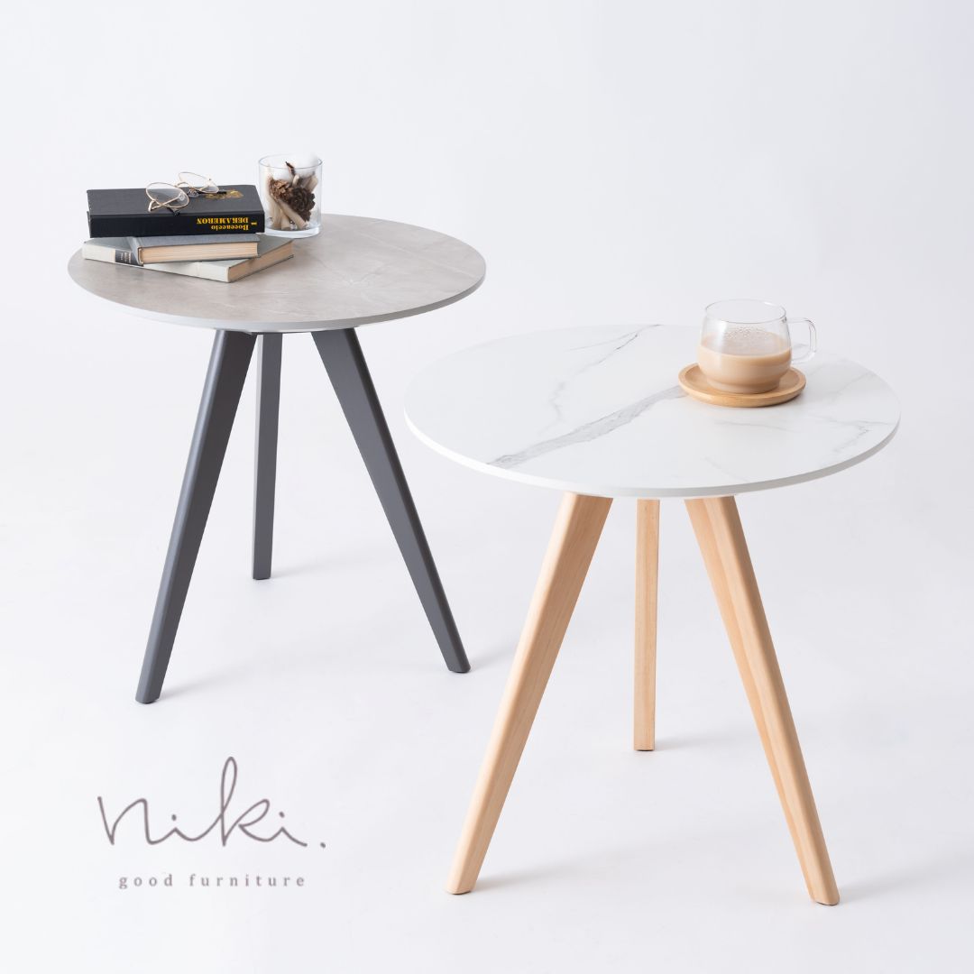 大理石調サイドテーブル ラウンドテーブル 「marble-マーブル-」 韓国インテリア 50×50 【送料無料】
