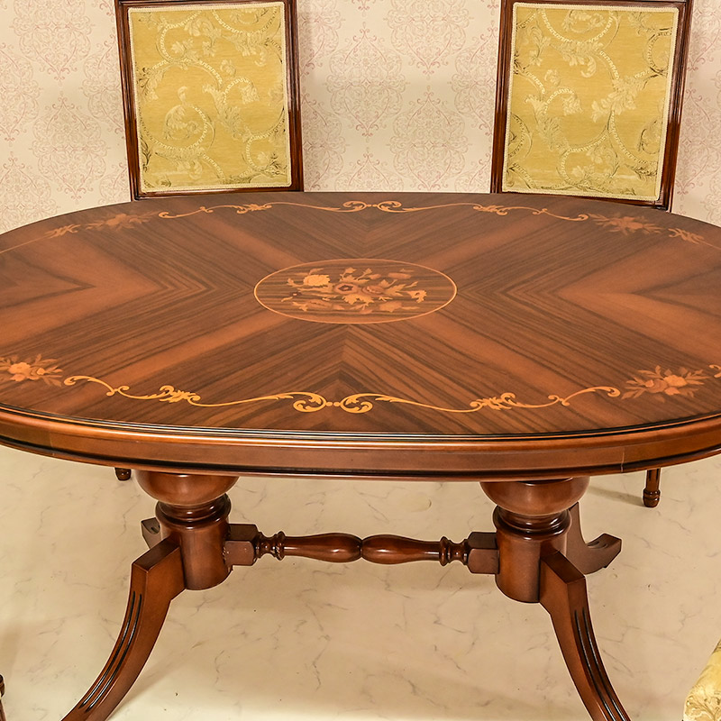 イタリア製 無垢材 楕円 ダイニングテーブル+ダイニングチェア4脚セット 食卓机+椅子4脚セット 150cm象嵌 数量限定