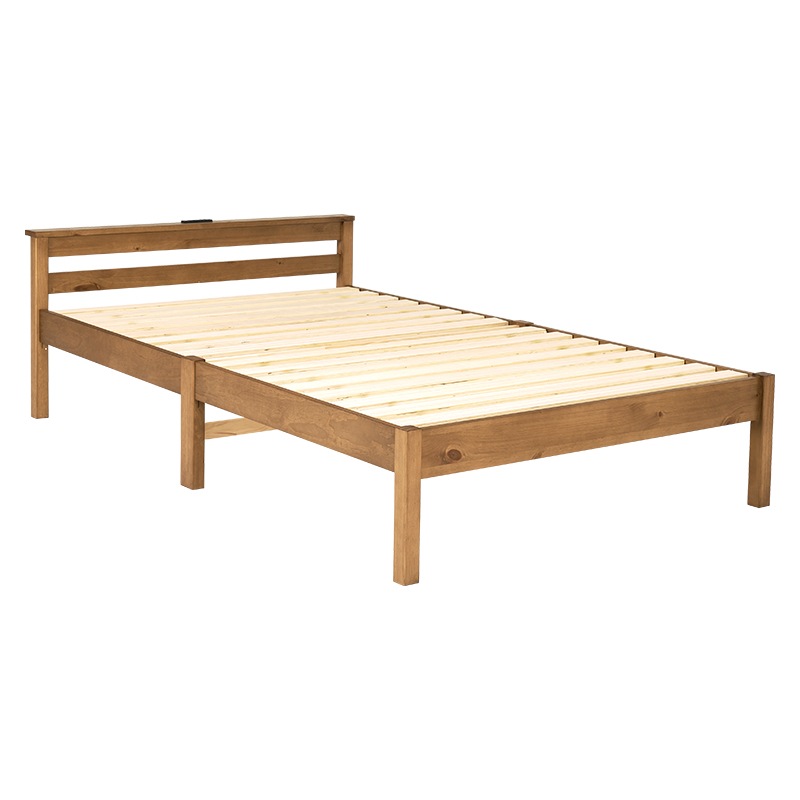 ウォールナット セミダブルベッド ウォルテ ブラウン 棚付き【携帯電話などの充電に便利なコンセント付き】 【引出し無し】