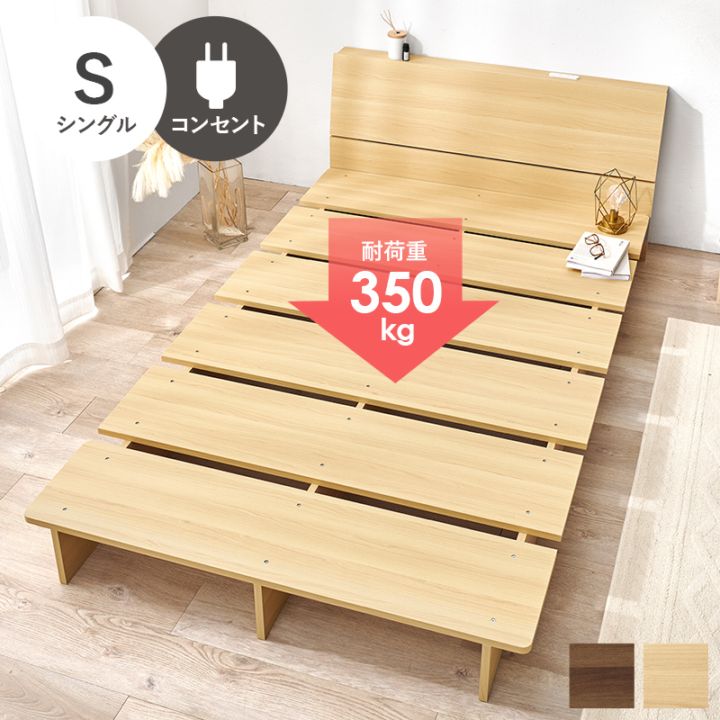 組立簡単 シングルベッド ベッドフレーム シングル すのこベッド 宮棚 コンセント付