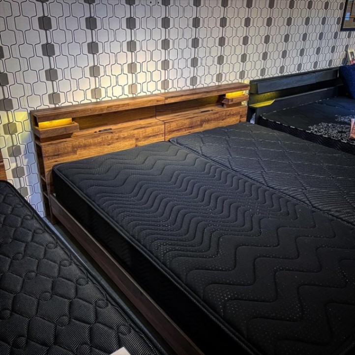 ベッド マットレス付き グレージュ ベッドフレーム ポケットコイル 国産マット付き LEDライト&棚付き&コンセント シングル ...