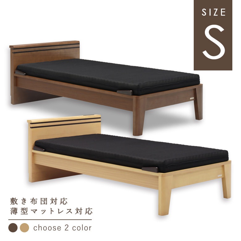 敷布団対応ベッド シングルベッド すのこベッド 棚付き コンセント付き 【布団、薄型マットレス対応ベッド】