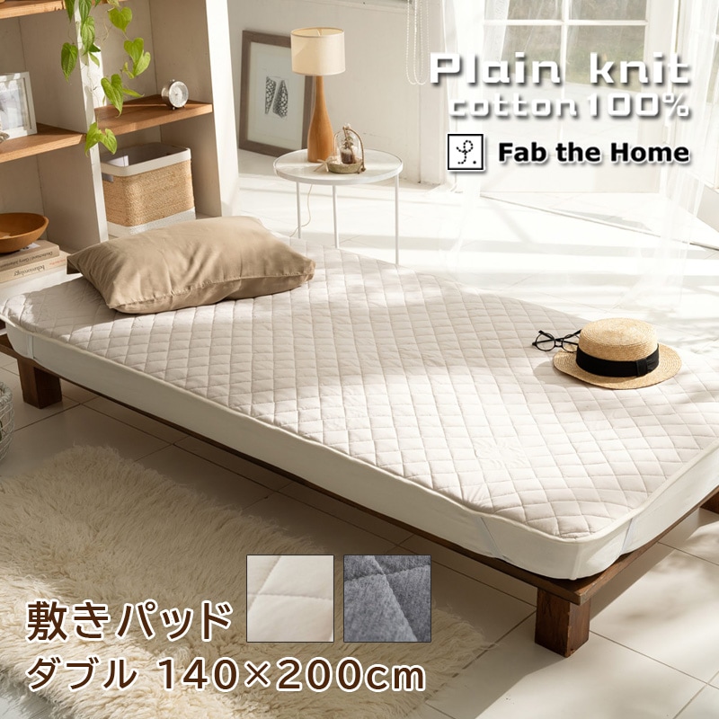 Fab the home プレインニット 敷きパッド ダブル 140x200cm 綿100% コットン 肌触り やわらか コットン...