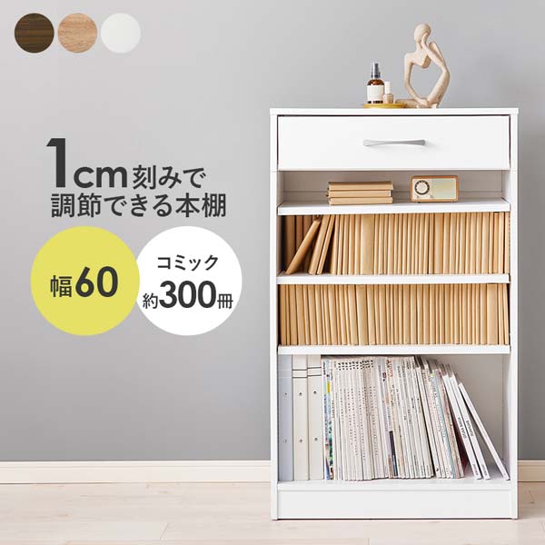 本棚 大容量 薄型 おしゃれ 引出し ブックラック 幅60cm