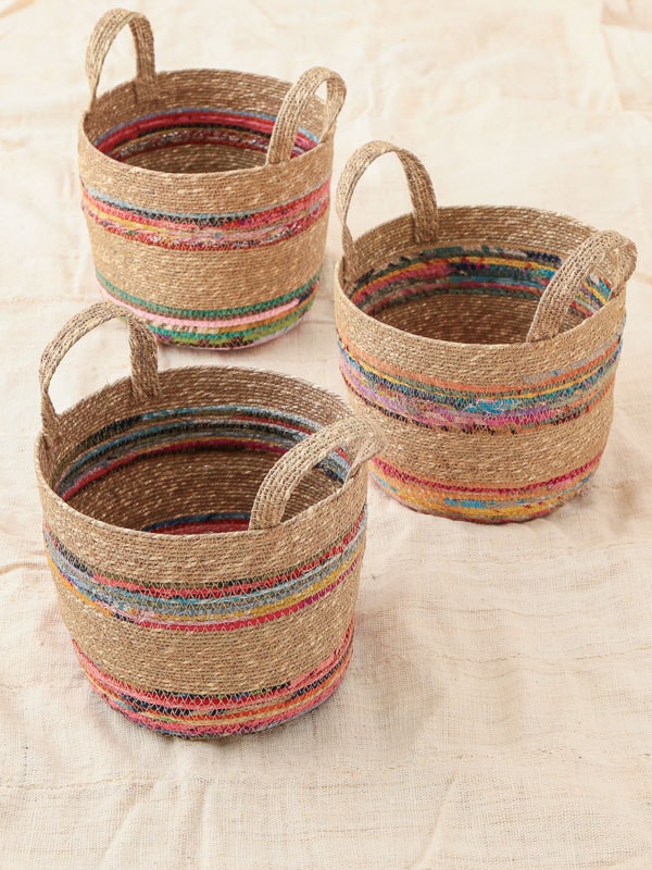 【30%OFF】ハンドル付き裂き織りバスケット(アソート)