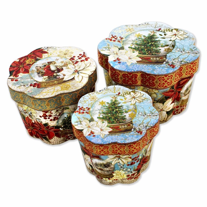 【掘り出し物】 Punch Studio 【クリスマス】 フルートボックス 3点セット (スノードーム×ポインセチア)