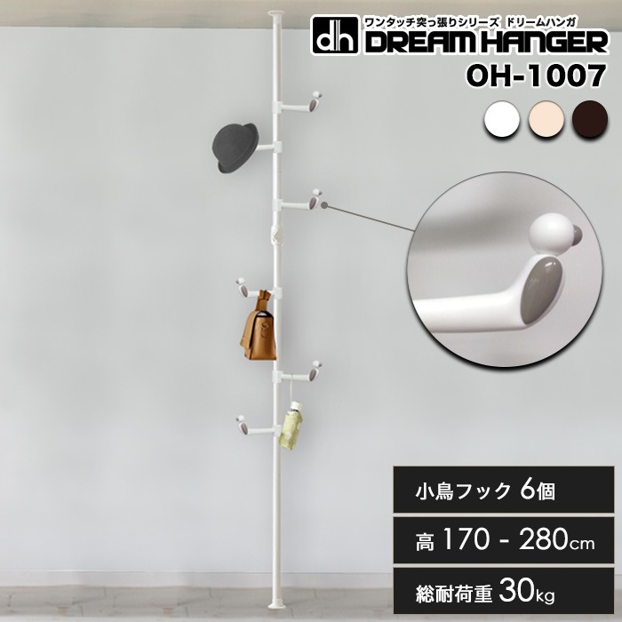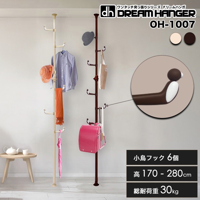 【簡単】ワンタッチ式突っ張りポールハンガー 小鳥フック6個 高さ170cm-280cm 総耐荷重30kg 子供 ドリームハンガー ...