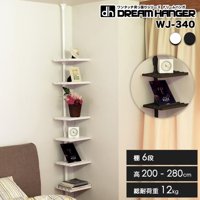 【簡単】 ワンタッチ式突っ張りポールハンガー ディスプレイラック 6段 棚付き 飾り棚 高さ170-280cm 総耐荷重12kg ...