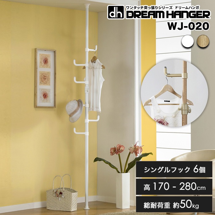 【簡単】ワンタッチ式突っ張りポールハンガー 高さ170-280cm 総耐荷重50kg シングルフック6個 ロングセラー ドリームハ...