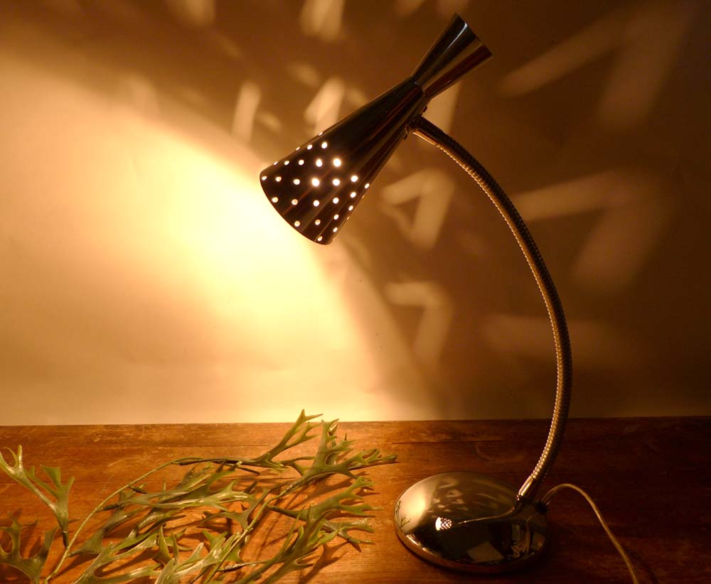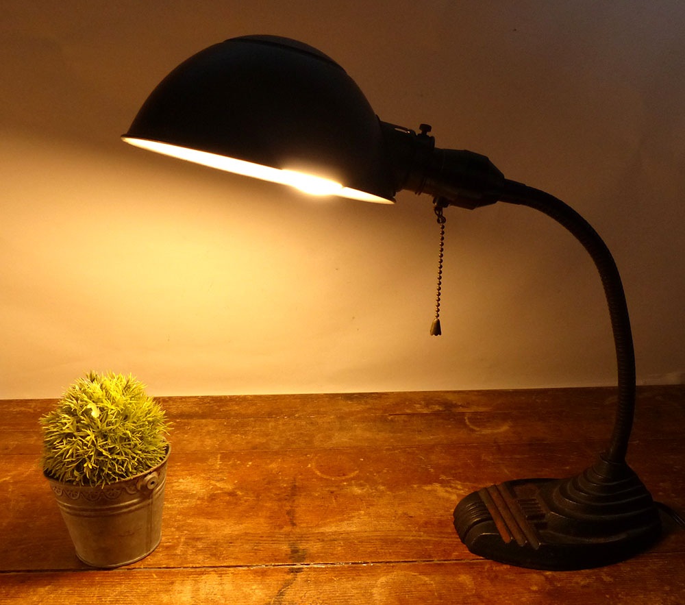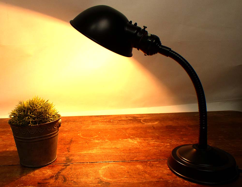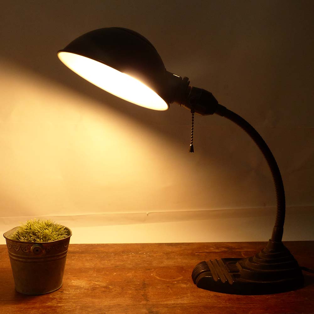 インダストリアル系 グースネック ビンテージ デスクランプ (アイアンスタンド)【中古】