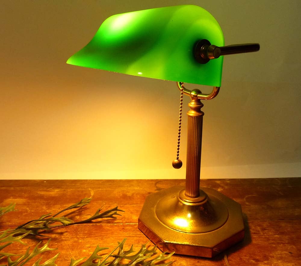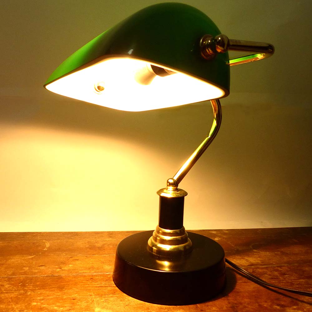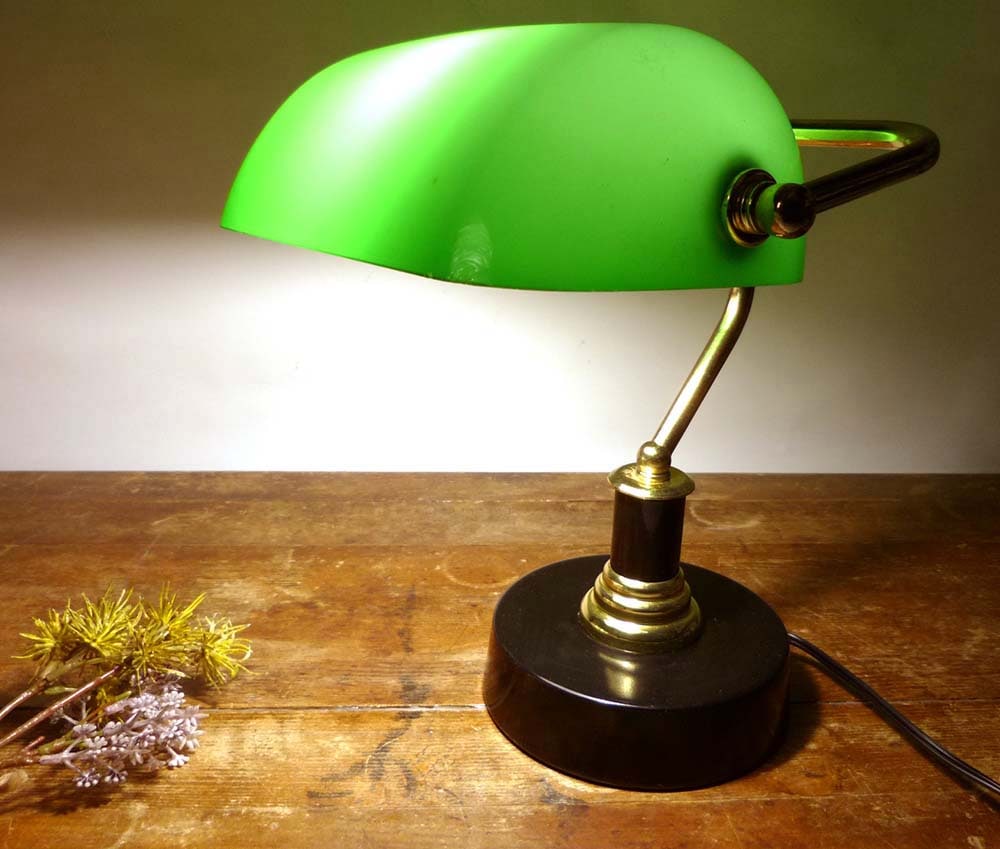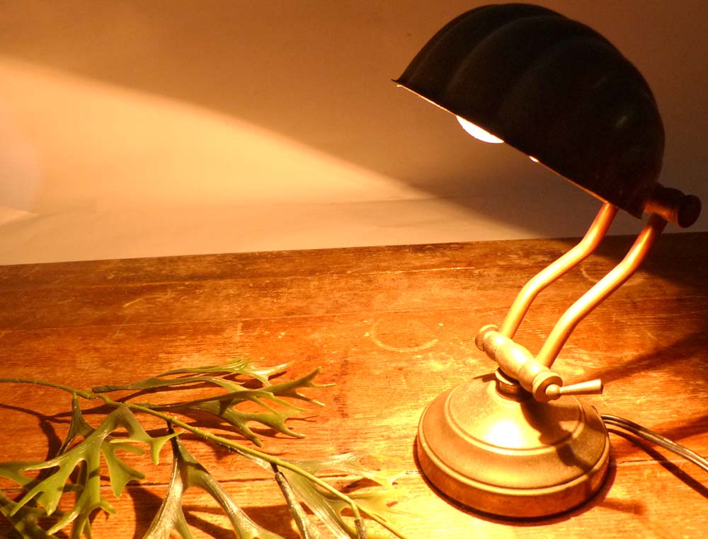 レトロな雰囲気の バンカーズランプ(ライト) デスクライト アンティーク オブジェ 店舗什器(電球付き)【中古】