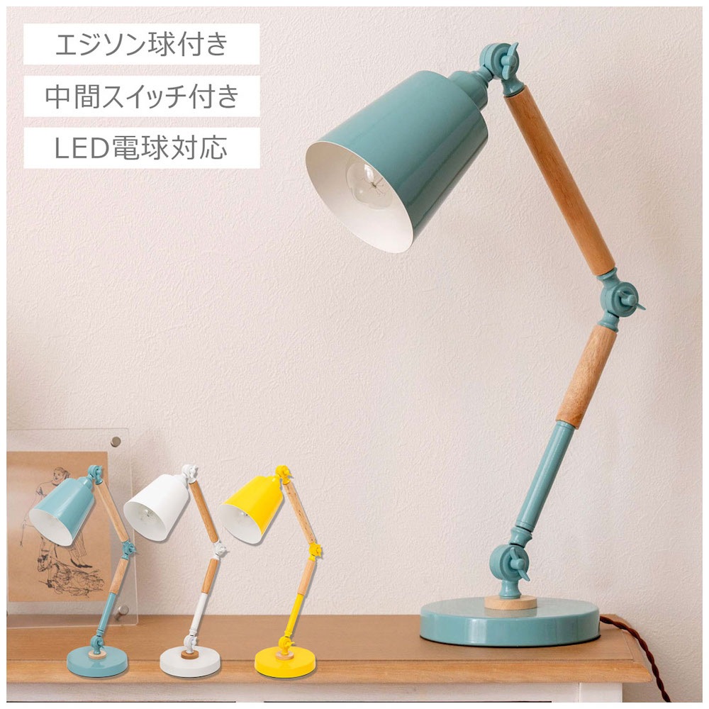 ポップなカラーリングと天然木の組み合わせが特徴的な北欧風デスクライト エジソン球60w付属【送料無料】