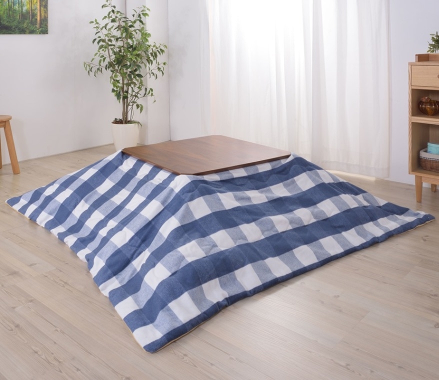 ■ギンガムチェック■グレー/ブルー■ 起毛生地であったか おしゃれなこたつ薄掛コタツ布団 正方形 W190×D190