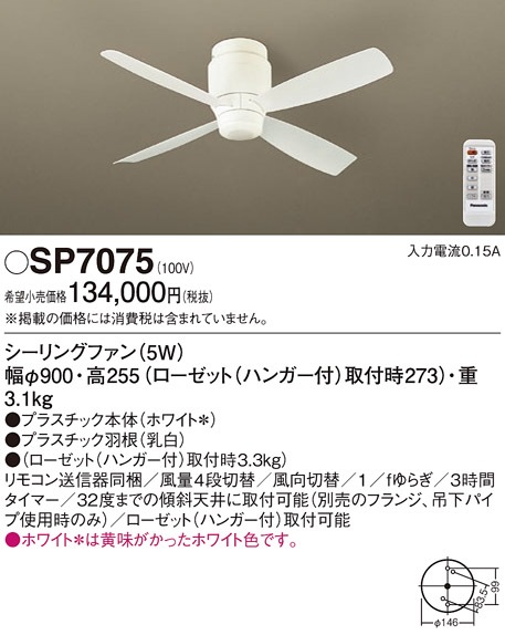 パナソニック SP7075 シーリングファン 天井直付型 DCモータータイプ